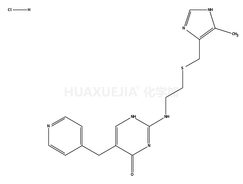 | 2-[2-[(5-methyl-1H-imidazol-4-yl)methylsulfanyl]ethylamino]-5-(pyridin-4-ylmethyl)-1H-pyrimidin-6-one,trihydrochloride 基本信息 | |||