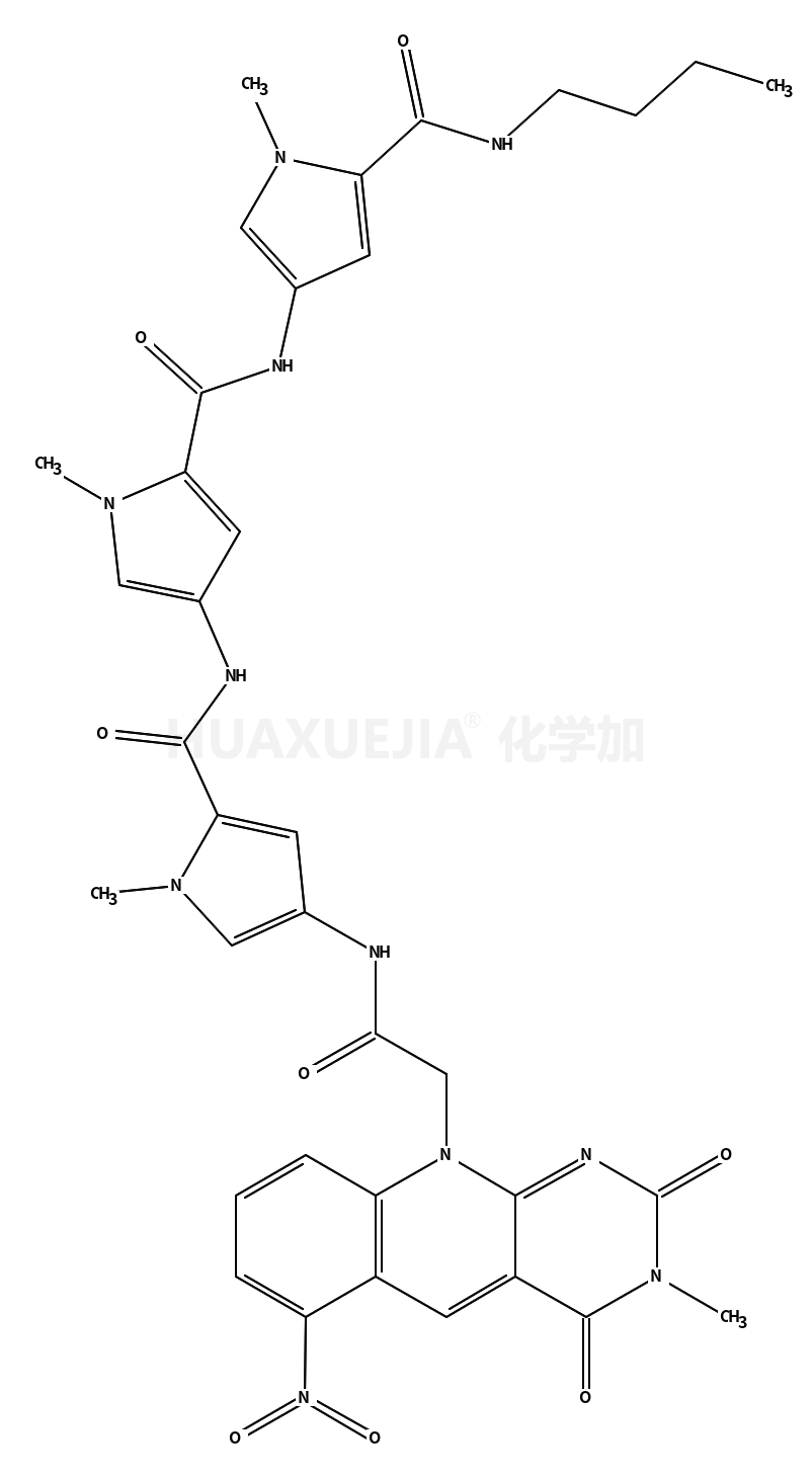 | N-[5-[[5-(butylcarbamoyl)-1-methylpyrrol-3-yl]carbamoyl]-1-methylpyrrol-3-yl]-1-methyl-4-[[2-(3-methyl-6-nitro-2,4-dioxopyrimido[4,5-b]quinolin-10-yl)acetyl]amino]pyrrole-2-carboxamide 基本信息 | |||