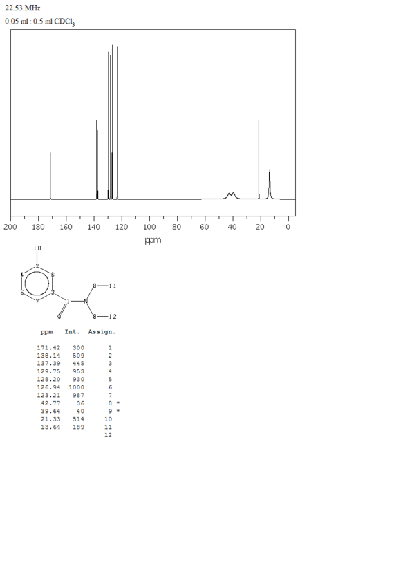 由间甲苯酰氯与二乙胺反应而得。工业品含5%-15%异构体