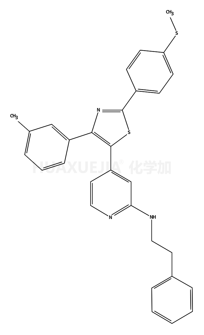 | 4-[4-(3-methylphenyl)-2-(4-methylthiophen-2-yl)-1,3-thiazol-5-yl]-N-(2-phenylethyl)pyridin-2-amine 基本信息 | |||