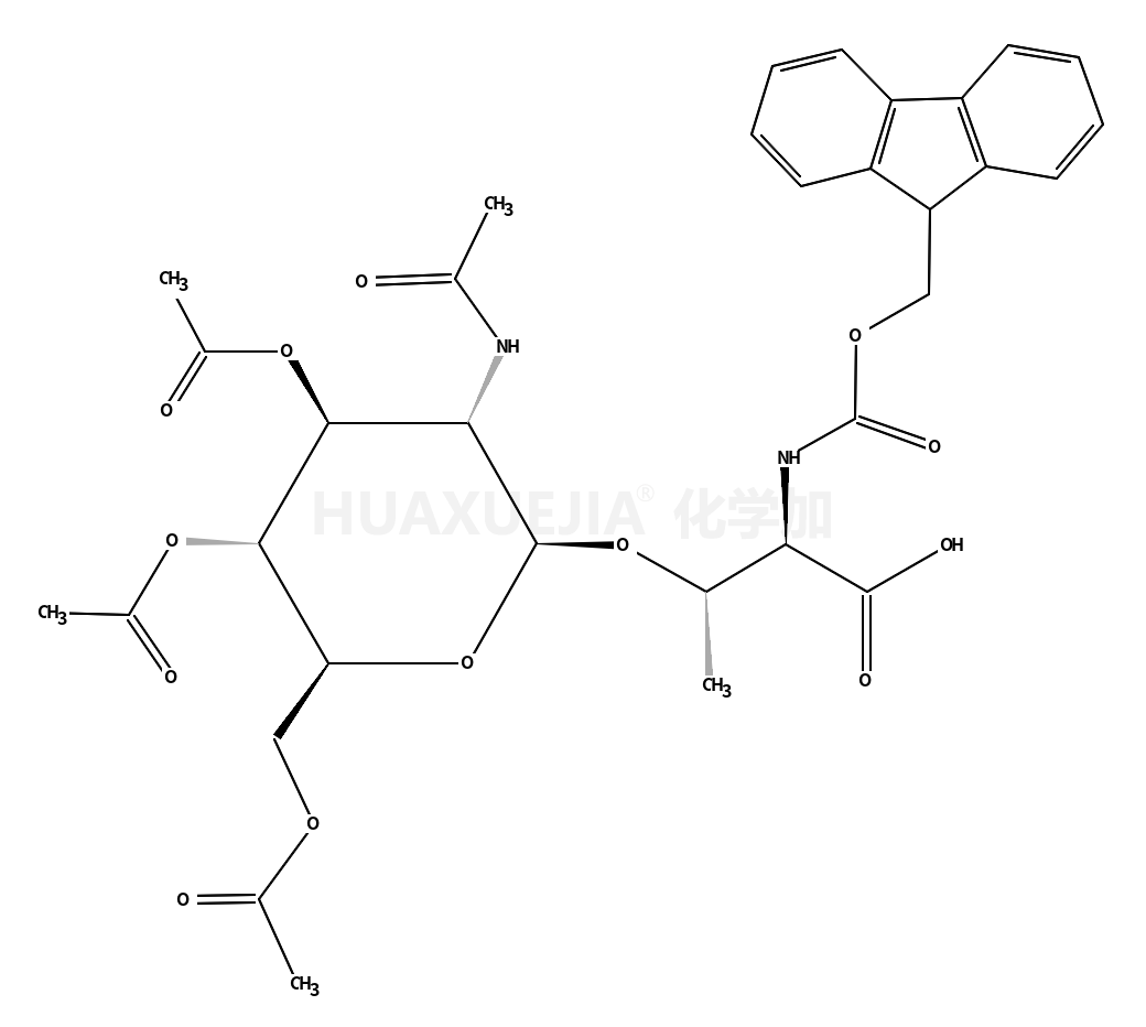 | (2S,3R)-3-{[(2R,3R,4R,5S,6R)-3-Acetamido-4,5-diacetoxy-6-(acetoxy methyl)tetrahydro-2H-pyran-2-yl]oxy}-2-{[(9H-fluoren-9-ylmethoxy) carbonyl]amino}butanoic acid (non-preferred name) 基本信息 | |||