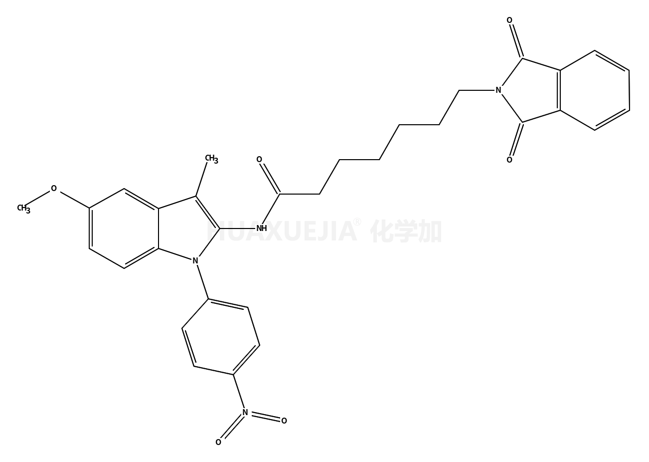 7-(1,3-dioxoisoindol-2-yl)-N-[5-methoxy-3-methyl-1-(4-nitrophenyl)indol-2-yl]heptanamide