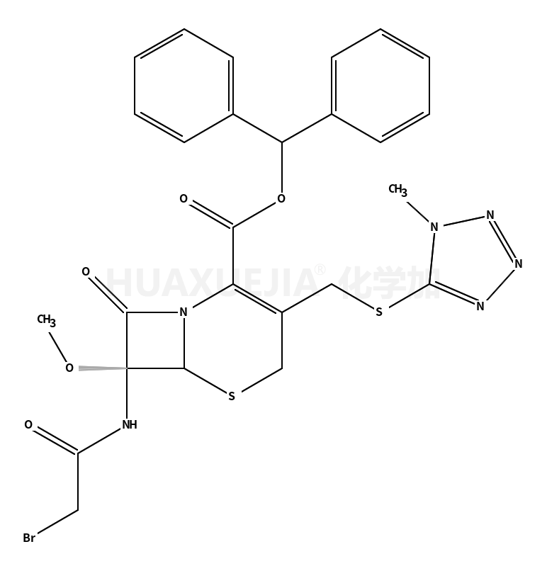 | (6R,7S)-7-[(溴乙酰)氨基]-7-甲氧基-3-[[(1-甲基-1H-四唑-5-基)硫]甲基]-8-氧代-5-硫杂-1-氮杂双环[4.2.0]辛-2-烯-2-甲酸二苯甲基酯 基本信息 | |||