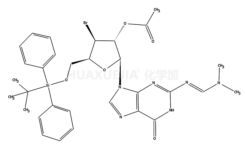 9-(2'-O-acetyl-3'-bromo-5'-O-tert-butyldiphenylsilyl-3'-deoxy-β-D-xylofuranosyl)-2-N-(N',N'-dimethylaminomethylene) guanine