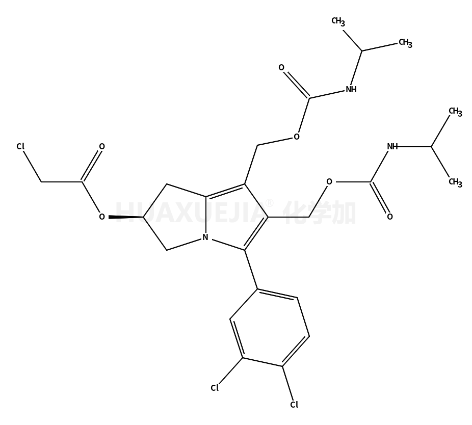 | [5-(3,4-dichlorophenyl)-6,7-bis(propan-2-ylcarbamoyloxymethyl)-2,3-dihydro-1H-pyrrolizin-2-yl] 2-(dimethylamino)acetate 基本信息 | |||