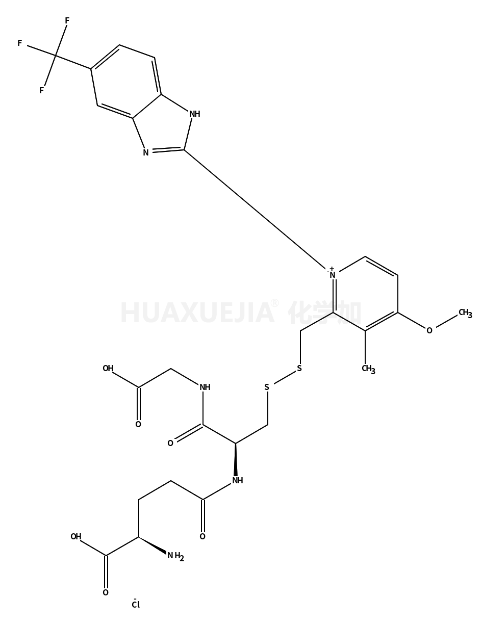 | (2S)-2-amino-5-[[(2R)-1-(carboxymethylamino)-3-[[4-methoxy-3-methyl-1-[6-(trifluoromethyl)-1H-benzimidazol-2-yl]pyridin-1-ium-2-yl]methyldisulfanyl]-1-oxopropan-2-yl]amino]-5-oxopentanoic acid,chloride 基本信息 | |||
