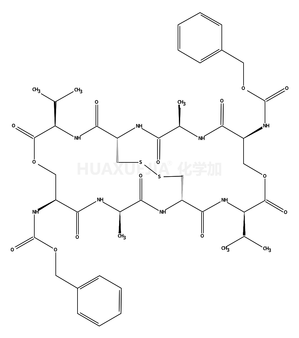 | benzyl N-[4,17-dimethyl-3,6,10,13,16,19,23,26-octaoxo-20-(phenylmethoxycarbonylamino)-11,24-di(propan-2-yl)-9,22-dioxa-28,29-dithia-2,5,12,15,18,25-hexazabicyclo[12.12.4]triacontan-7-yl]carbamate 基本信息 | |||