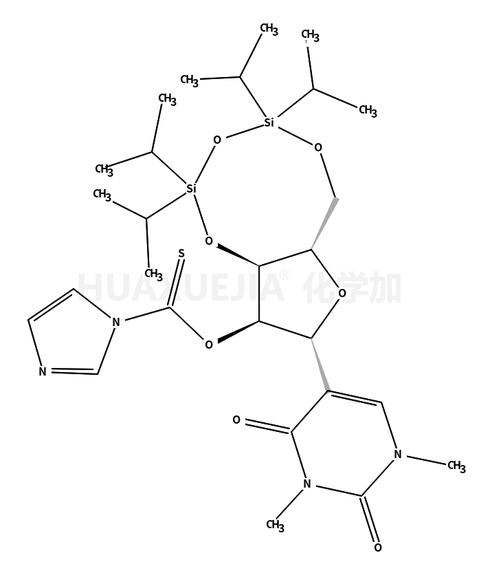 | O-[8-(1,3-dimethyl-2,4-dioxopyrimidin-5-yl)-2,2,4,4-tetra(propan-2-yl)-6a,8,9,9a-tetrahydro-6H-furo[3,2-f][1,3,5,2,4]trioxadisilocin-9-yl] imidazole-1-carbothioate 基本信息 | |||