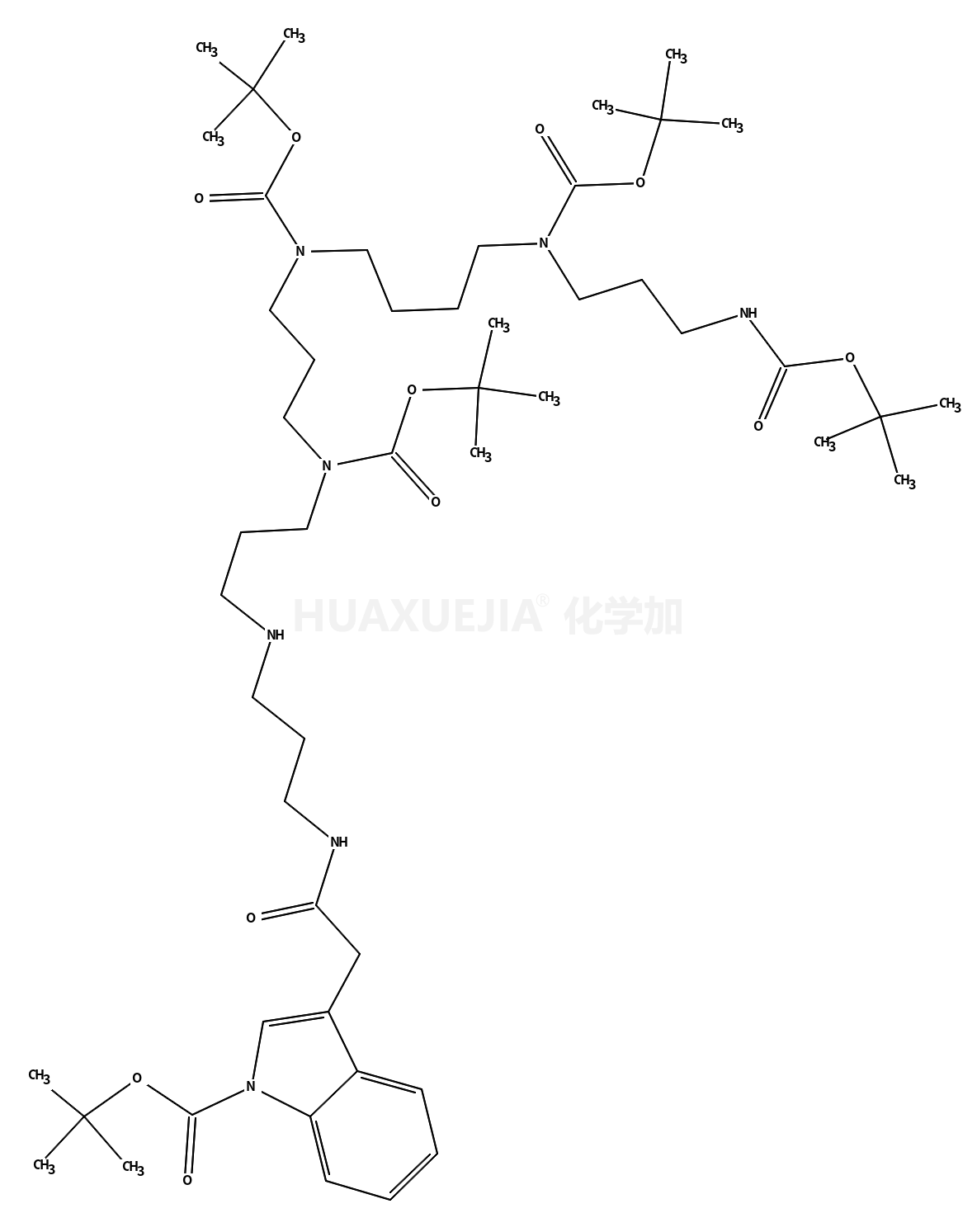 | 28-[1-[(1,1-dimethylethoxy)carbonyl]-1H-indol-3-yl]-2,2-dimethyl-4,27-dioxo-3-oxa-5,9,14,18,22,26-hexaazaoctacosane-9,14,18-tricarboxylic acid tris(1,1-dimethylethyl) ester 基本信息 | |||