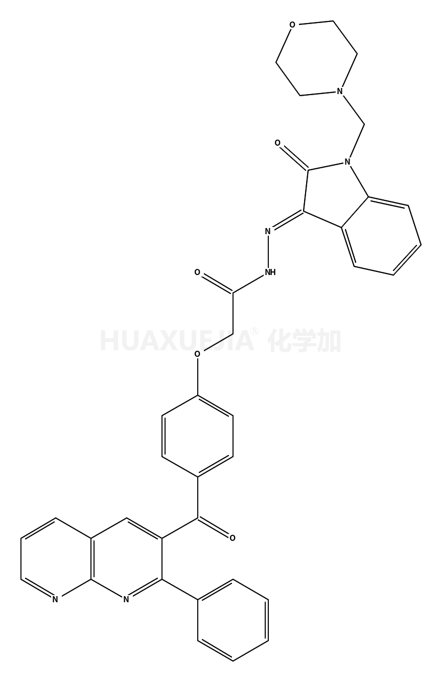 | N-[(Z)-[1-(morpholin-4-ylmethyl)-2-oxoindol-3-ylidene]amino]-2-[4-(2-phenyl-1,8-naphthyridine-3-carbonyl)phenoxy]acetamide 基本信息 | |||