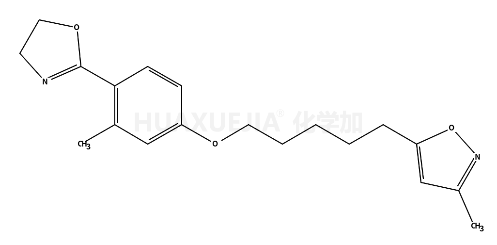 | 5-[5-[4-(4,5-dihydro-1,3-oxazol-2-yl)-3-methylphenoxy]pentyl]-3-methyl-1,2-oxazole 基本信息 | |||