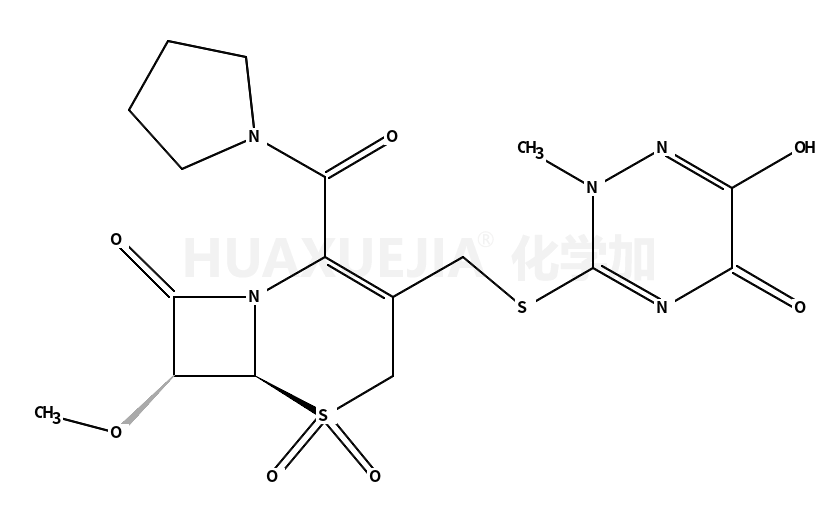 | 3-({[(6R,7S)-7-甲氧基-5,5-二羟基-8-羰基-2-(吡咯烷-1-基羰基)-5-硫杂-1-氮杂二环[4.2.0]辛-2-烯-3-基]甲基}硫烷基)-2-甲基-1,2-二氢-1,2,4-三嗪-5,6-二酮 基本信息 | |||
