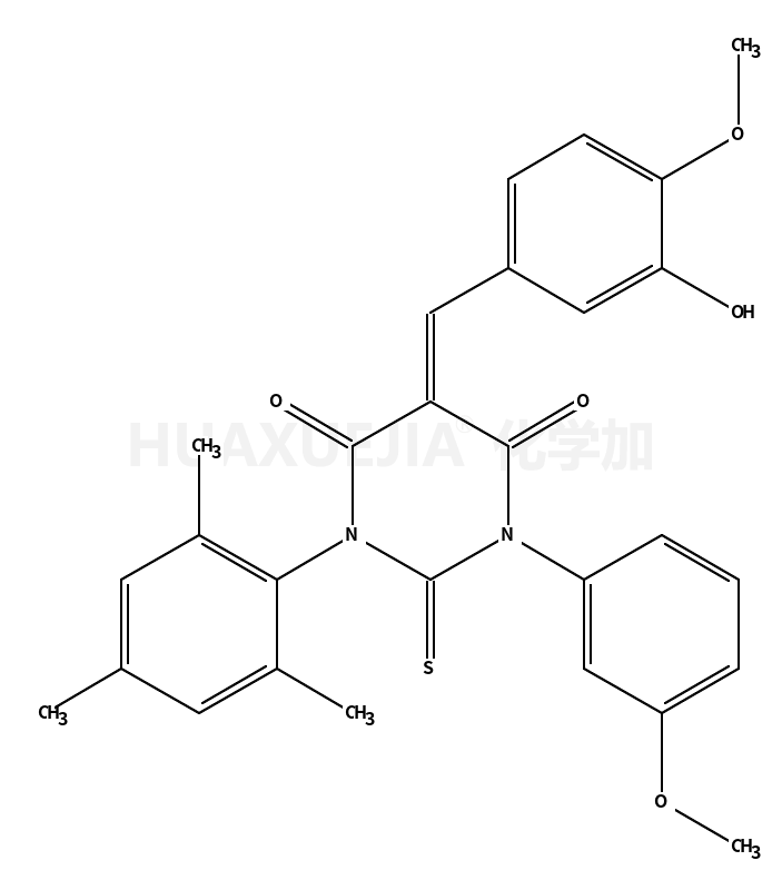 | (5E)-5-[(3-hydroxy-4-methoxyphenyl)methylidene]-1-(3-methoxyphenyl)-2-sulfanylidene-3-(2,4,6-trimethylphenyl)-1,3-diazinane-4,6-dione 基本信息 | |||