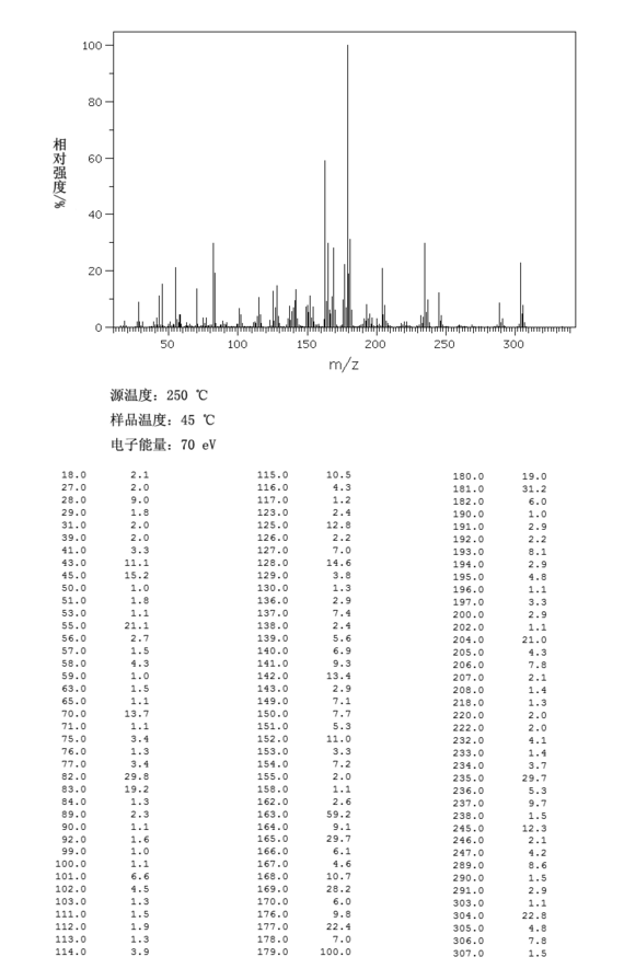 7、单一同位素质量:304.109089 Da