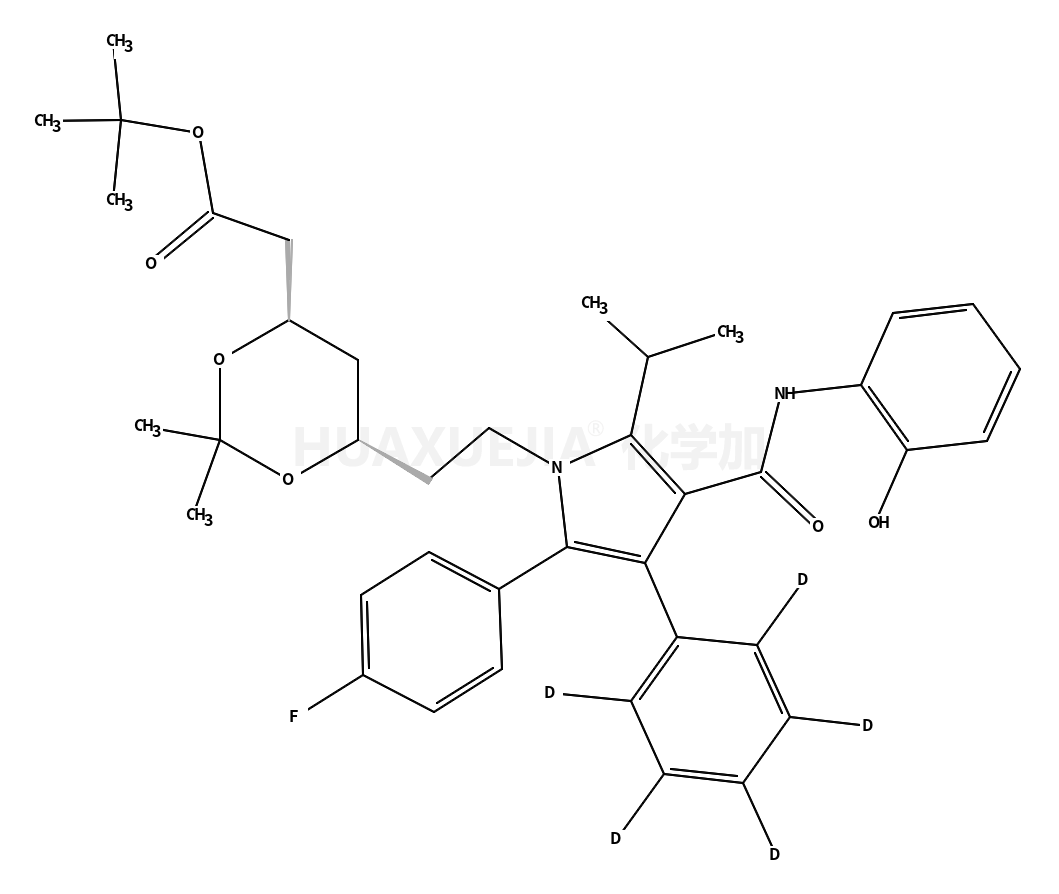 | tert-butyl 2-[(4R,6R)-6-[2-[2-(4-fluorophenyl)-4-[(2-hydroxyphenyl)carbamoyl]-3-(2,3,4,5,6-pentadeuteriophenyl)-5-propan-2-ylpyrrol-1-yl]ethyl]-2,2-dimethyl-1,3-dioxan-4-yl]acetate 基本信息 | |||